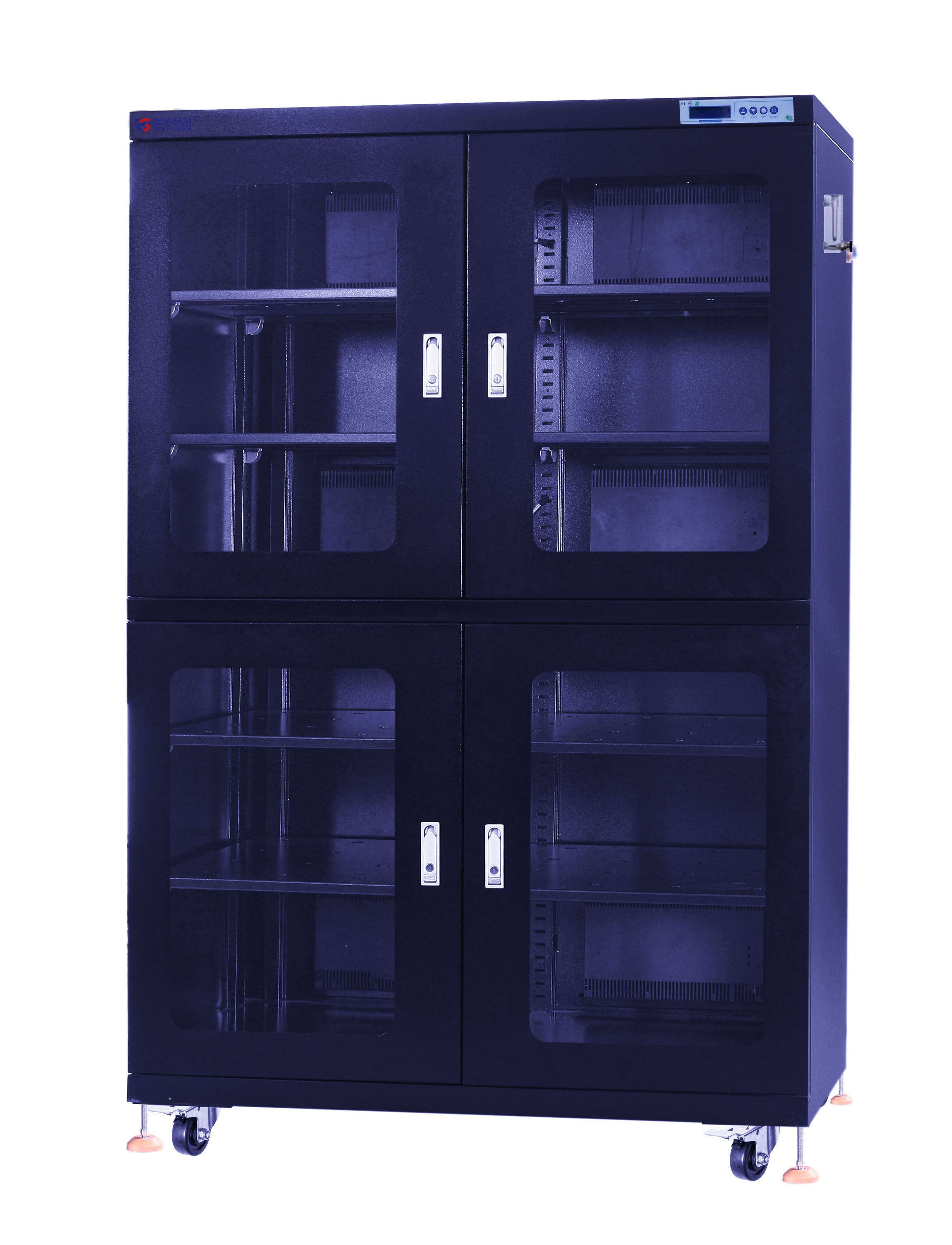 控制系统为新一代微电脑传感自动控制充氮,气体流量压力可调,快速将氮气冲入柜内,使柜内压力略高于环境气体压力,保持足够的氮气浓度,更好控制柜内干燥及抗氧化性。控制盒集成了控制系统成为一个单独模组,不仅稳定性高,而且便于后期更换和维护升级。控制盒内核心部件为进口,保障产品的控制精度及设备的整体运行稳定。对存储湿敏组件要求高、快速降湿干燥、开关门频繁的现场作业起到至关重要防护。控制系统设计为可长年每天24小时不间断运行,加上可选加复合型控湿节氮主机,不仅起到断电除湿防护,且至少节省一倍以上的氮气,微电脑自动化设计,达到设定值自动停止运行,主机将处于半停止运行状态,延长使用寿命。